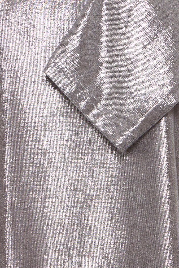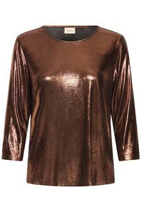 This metallic top combines contemporary style with practical comfort. Crafted from a premium blend of 93% polyester and 7% elastane, the fabric delivers a lustrous sheen whilst maintaining excellent stretch and recovery for all-day wearability. The three-quarter sleeve length offers versatile layering options, making it equally suited to casual daytime wear or evening occasions.