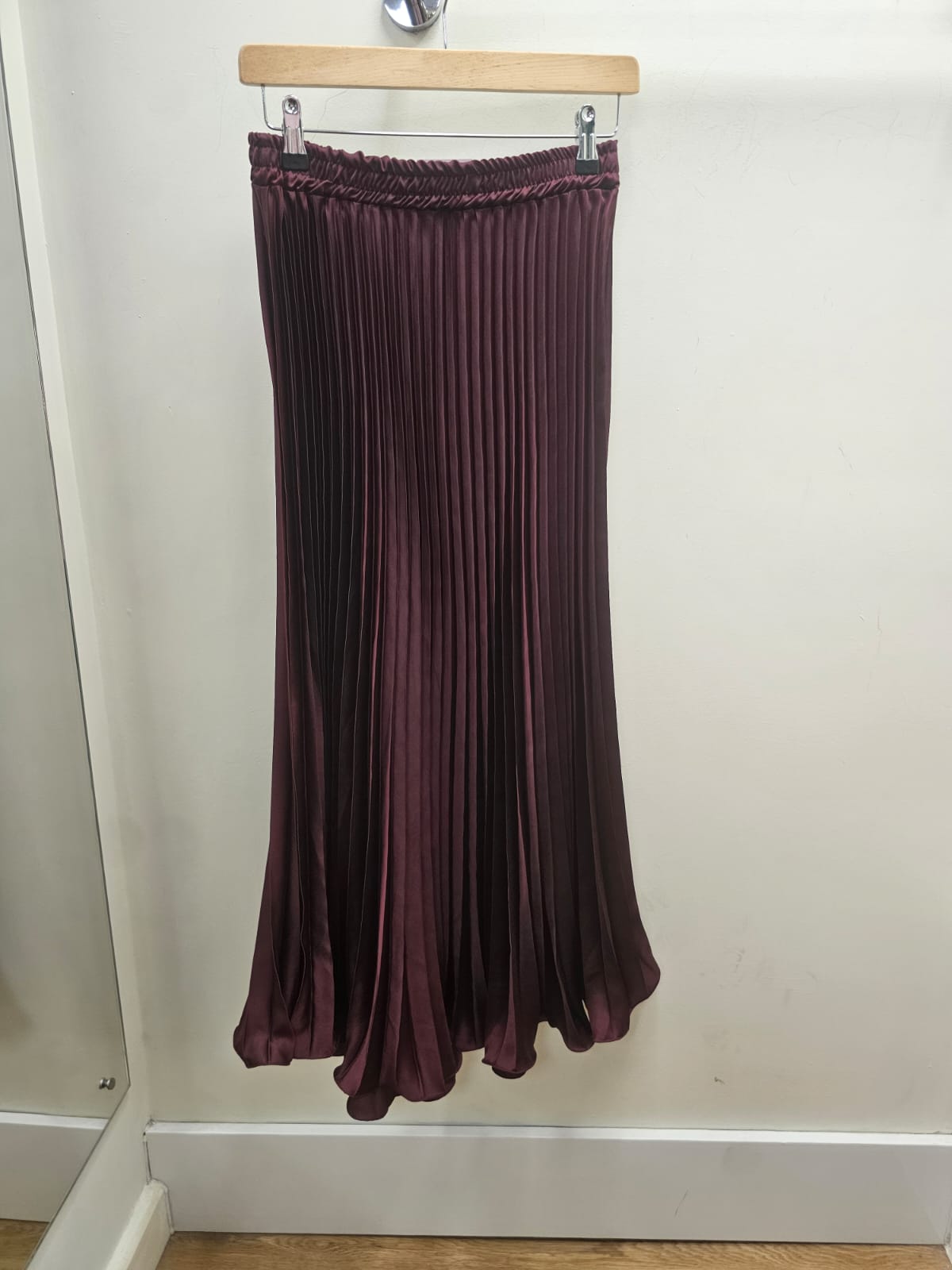 Elevate your wardrobe with this sophisticated pleated maxi skirt, a timeless piece that combines refined elegance with versatile styling. The structured pleats create graceful movement and a flattering silhouette, while the maxi length offers understated sophistication suitable for both professional and occasion wear.